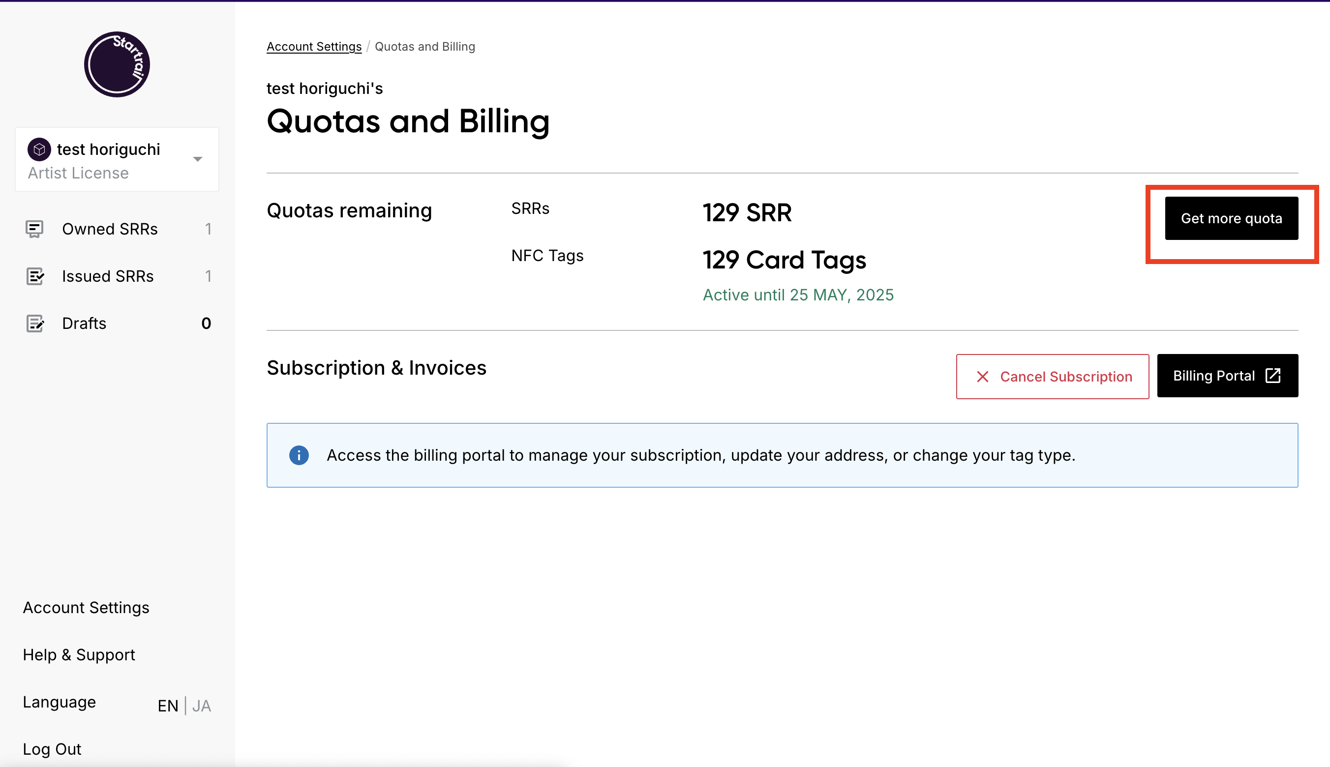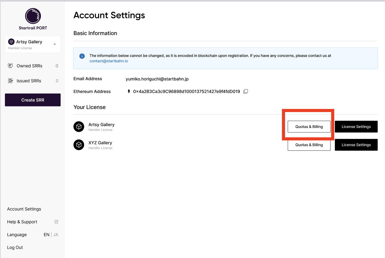 - Click "Quota & Billing" on the right side of the registered license list to navigate to the plan and billing information page