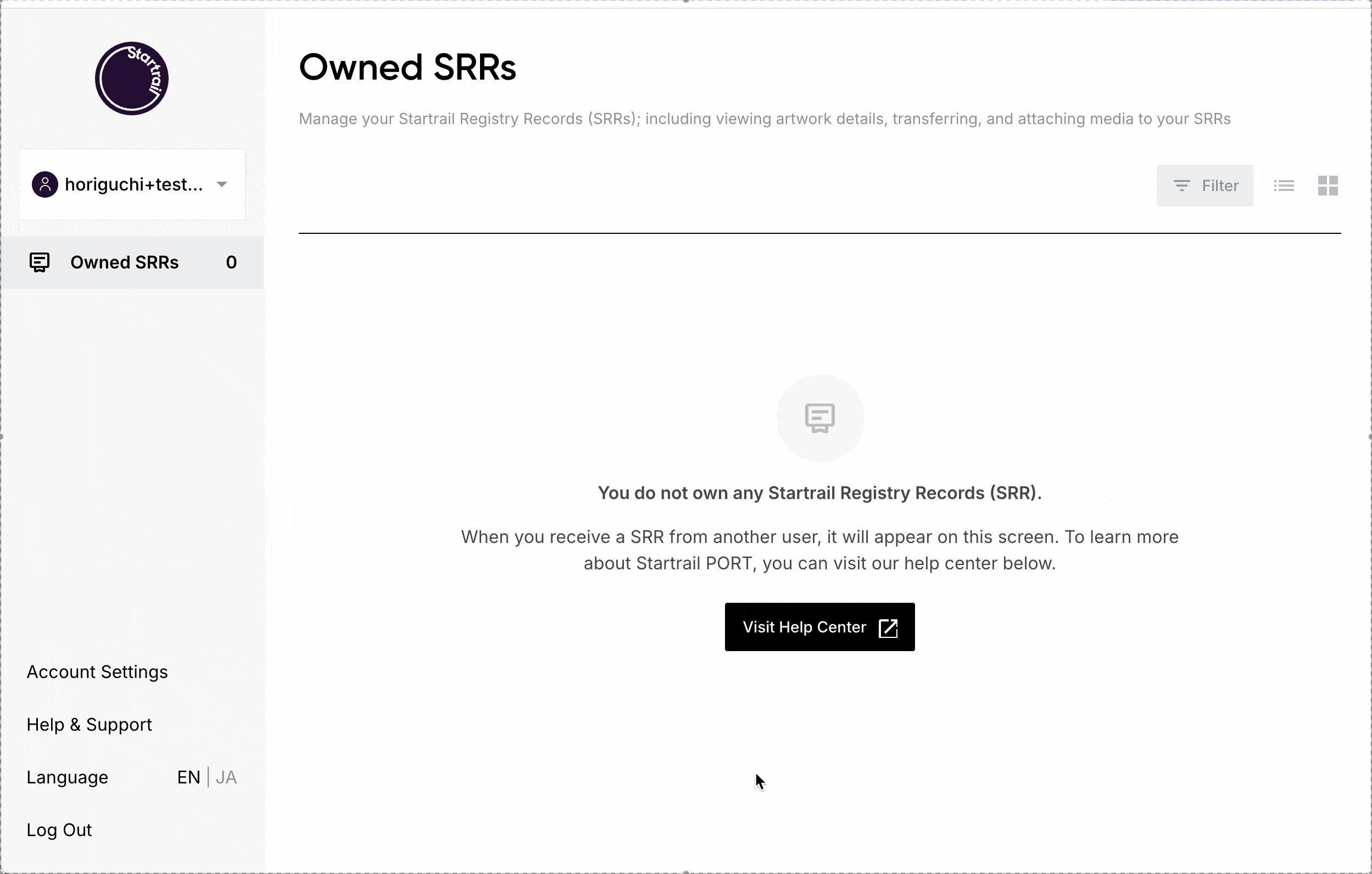 | SRR | Abbreviation for Startrail Registry Record. In Startrail PORT, we call NFTs that record artwork provenance by this name |
